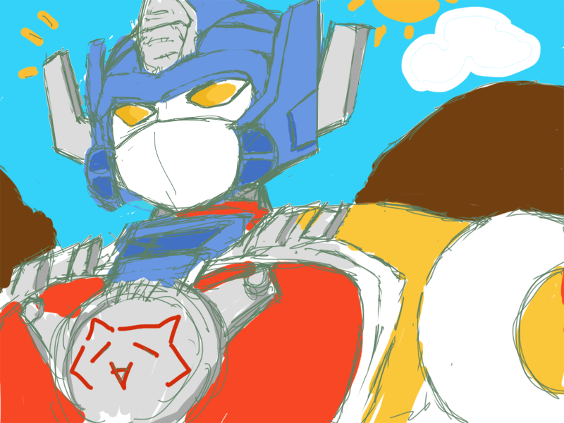 機械生命体なのに汗マーク?とか、今までメチャかっこよかったのに急にかわいいぞこの人、とか